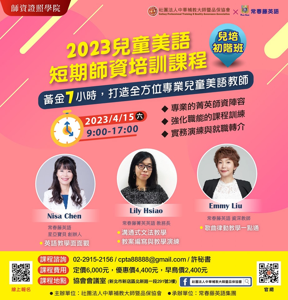 ? 加入黃金12小時師資培訓課程,讓你/妳快速成為專業的美語老師!