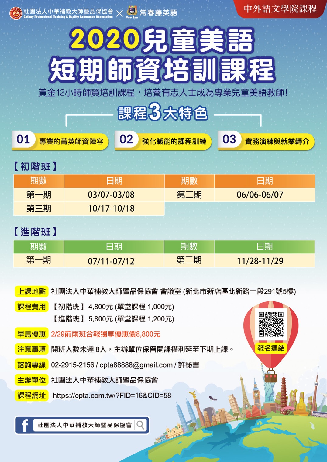 台北場 > 初階班、進階班兒童美語短期師資培訓班
