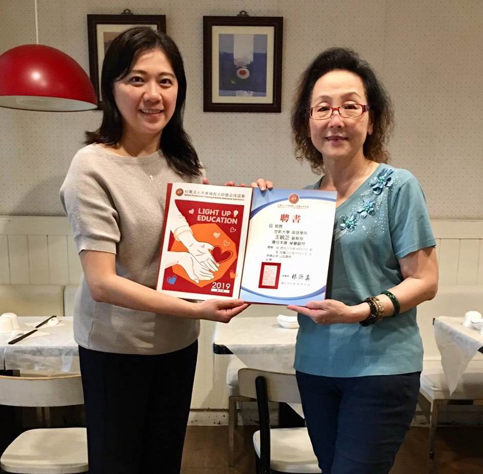 由 林沂真理事長 代表協會頒發 「學者顧問聘書」給 王毓芝 副教授
