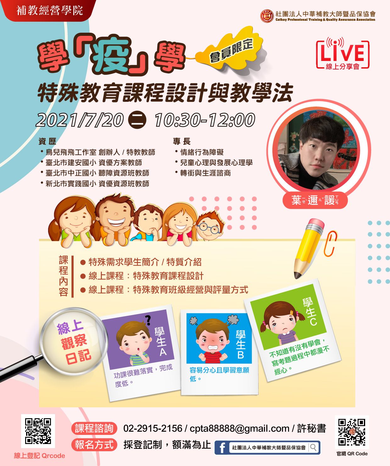 線上課程學「疫」學,特殊教育課程設計與教學法