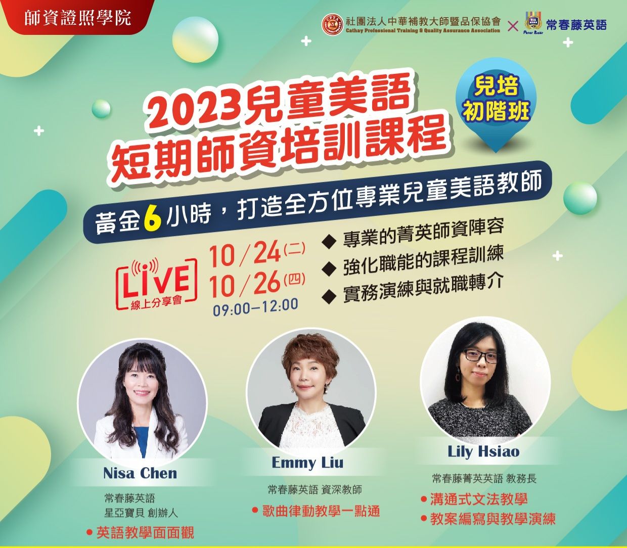 線上師訓課程兒童美語短期師資培訓課程 初階班
